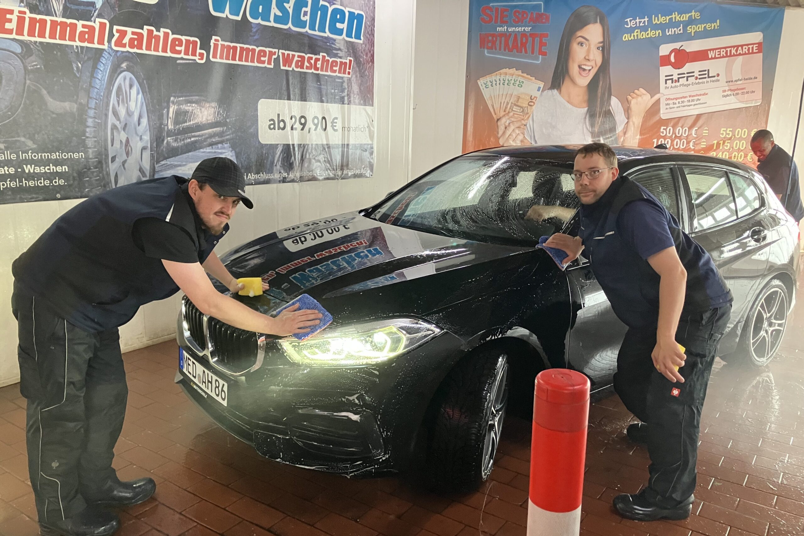 Außerdem sorgt eine Osmose-Spülung durch entmineralisiertes Wasser für eine besonders fleckenfreie Trocknung. „Doch ein gutes Waschergebnis steht und fällt mit der Vorwäsche“, weiß Kathmann aus Erfahrung. „Daher wird diese bei A.PF.EL. von vier Mitarbeitern in Handarbeit übernommen.“ Zudem erfolge die anschließende mechanische Reinigung des Fahrzeugs nicht per Bürsten, sondern durch lackschonende Textilstreifen.
