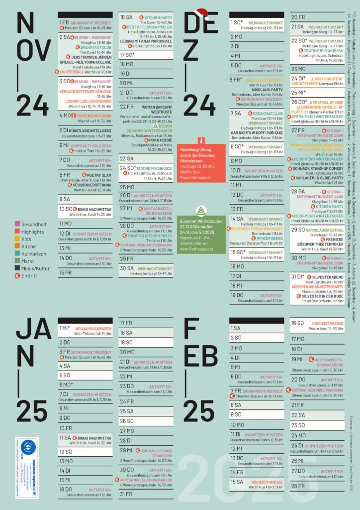 Die Vorfreude auf die Weihnachtszeit steigt. Um die Weihnachtszeit noch ein bisschen spannender zu gestalten, öffnet sich auch in diesem Jahr wieder jeden Tag ein Türchen des digitalen Büsumer Adventskalenders. Viele kniffelige Rätsel, spannende Fakten über Büsum und attraktive hochwertige Gewinne erwarten Teilnehmende. Die Anmeldung zur Teilnahme ist ab sofort möglich unter adventskalender.buesum.de