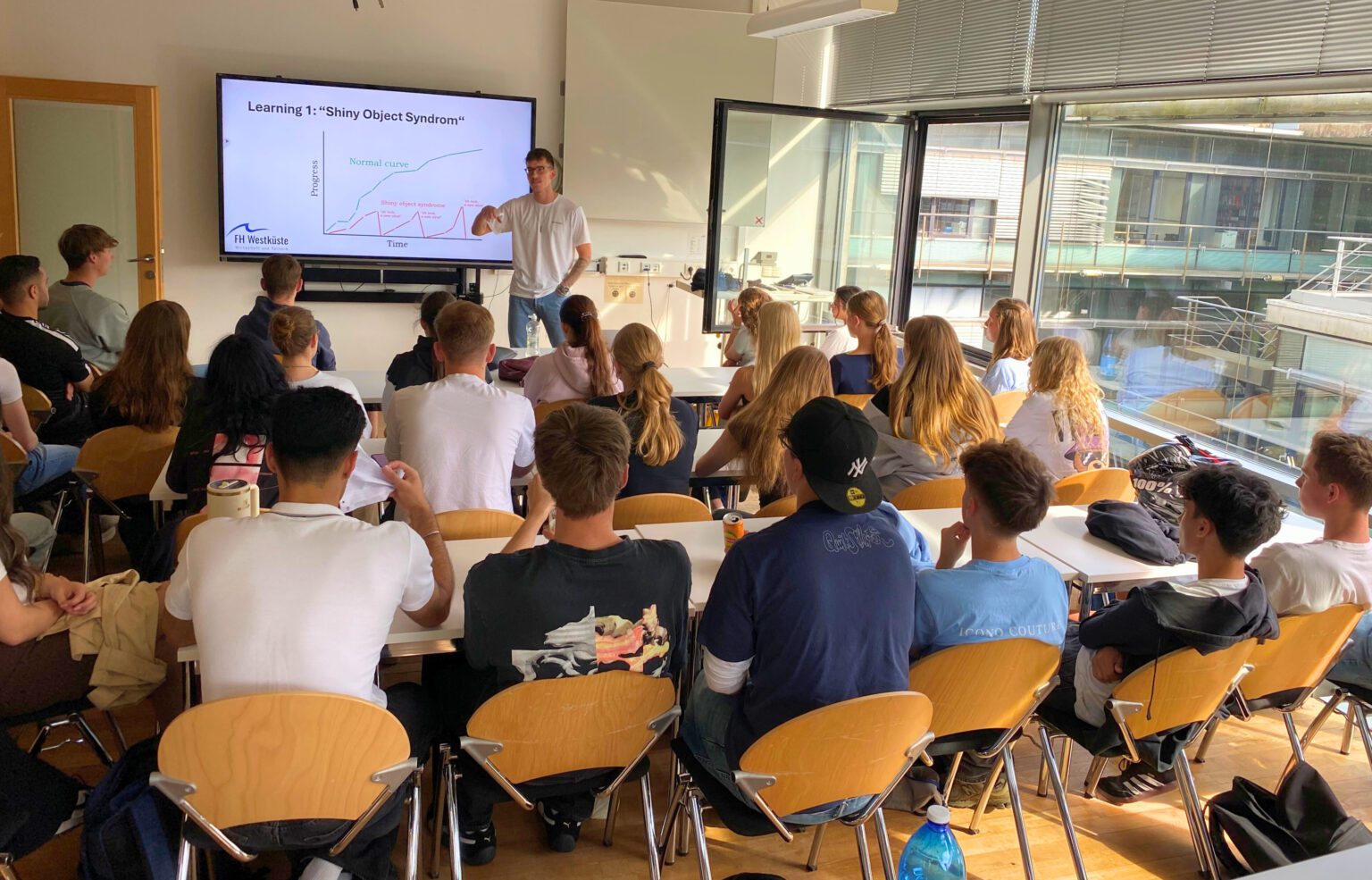 Die FH Westküste stellte zudem den neuen Studiengang „Soziale Arbeit“ vor, der ab dem kommenden Jahr angeboten wird. Großes Interesse weckte beispielsweise auch der Vortrag von Nils Bautz, der an der FH Westküste studiert und parallel ein eigenes Start-up Purpose Personal gegründet hat. Er berichtete, welche Unterstützung die Hochschule bei Unternehmensgründungen bietet – und gab persönliche Einblicke in seinen Gründungsalltag.