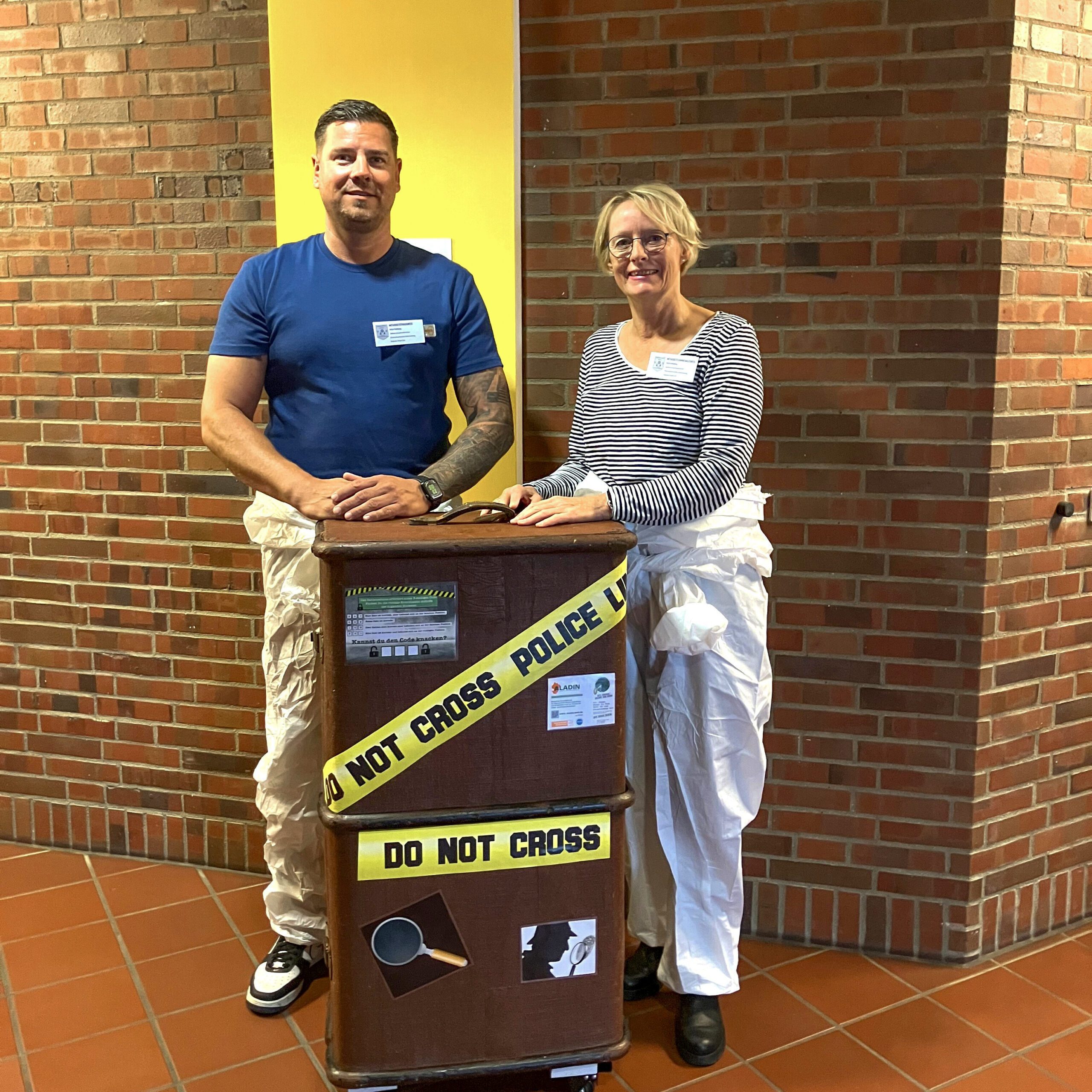 Genau 60 Minuten Zeit hat die aus den Teilnehmenden gebildete Sonderermittlungsgruppe, um sich an die Fersen eines kriminellen Netzwerkes zu hängen und das Rätsel zu lüften. „Logik, Scharfsinn und Teamwork sind gefragt“, sagen Katrin Martens und Ole Kuhn von der AWD. „Denn nur wenn alle Hinweise gefunden werden, können die Täter dingfest gemacht werden.“ Hierfür müssen Zahlenschlösser und Codes geknackt, Karten und UV-Licht-Spuren entschlüsselt und viele weitere Aufgaben gelöst werden.