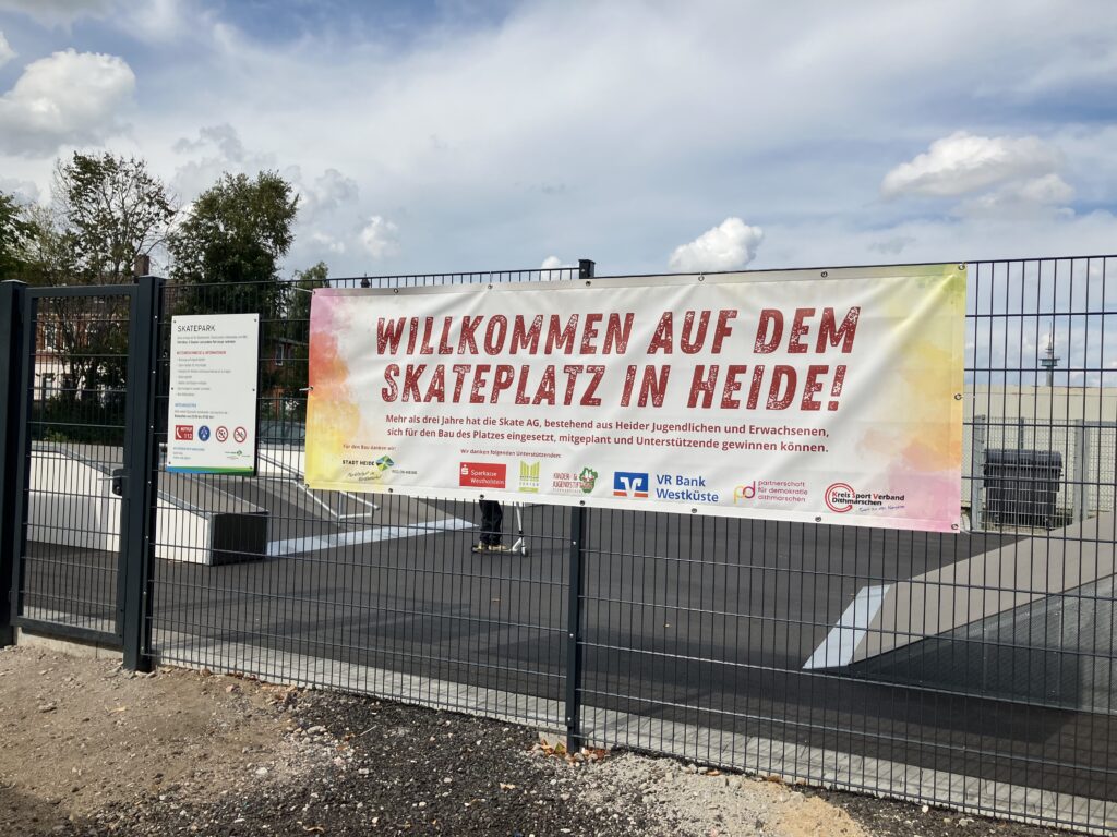 Mit dem neuen Skate-Park ist die Stadt Heide also um einen öffentlichen und frei zugänglichen Ort für Kinder und Jugendliche reicher. Geöffnet ist dieser täglich zwischen 7 Uhr und 22 Uhr. Dabei geht es nicht nur um das Angebot für sportliche Betätigung, sondern gleichzeitig um die Schaffung eines weiteren sozialen Treffpunkts. Bis zur Eröffnung war es ein langer Weg, den die Jugendlichen zusammen mit einigen Erwachsenen mit ihrer Skate-AG und jeder Menge Einsatz für das Projekt beschritten haben. Langwierige demokratische Prozesse in verschiedenen Ausschüssen, bei denen sich Optimismus und Rückschläge für die Skate-Fans abwechselten, mussten durchgestanden werden. Unter anderem hatte die nahe gelegene Musikschule starke Bedenken aufgrund des zu erwartenden Lärms der Skater geäußert. Ein Kompromiss sorgte schließlich für Einigung: die Musikschule bekommt Schallschutzfenster, eine neue Lüftung und Parkplätze auf der Südseite und die Skate-AG ihren lang ersehnten Skate-Park.