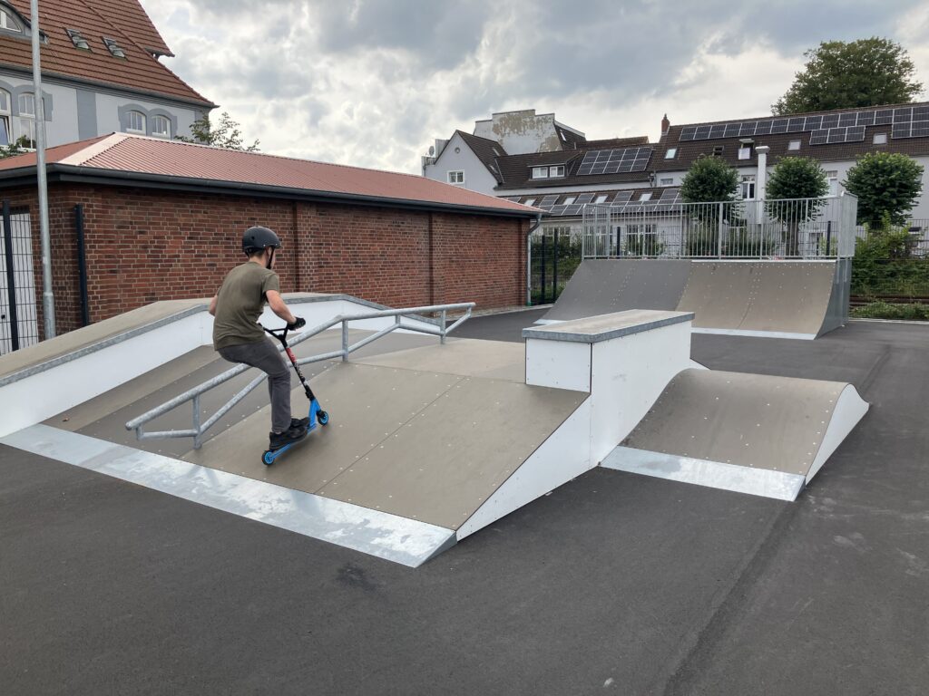 Egal ob mit Inlinern, Skateboard, Stuntscooter oder BMX-Rad – seit Kurzem kann auf einer rund 470 Quadratmeter großen Fläche hinter dem Jugendzentrum gefahren, getrickst und gesprungen werden, was das Zeug hält. Natürlich jeder nach seinen Fähigkeiten. Ein spezieller Asphalt und verschiedene Geräte wie Rampen, Curbs und Rails stehen allen Skater-Fans zur Verfügung.